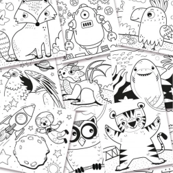 - 15 színezhető lap – színes állatmotívumok, amelyek támogatják a fantáziát.