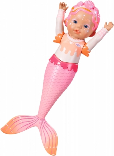Fedezd fel a tengeri történetek varázslatos világát a BABY BORN My First Mermaid babával. Könnyű, a gyerekkezekhez kellemesen formázott, és minőségi, vízi játékhoz is alkalmas anyagokból készült. A kádban és azon kívül is kedvenc társa lesz a tengeres meséket kedvelő kicsiknek.