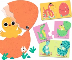 A színekben gazdag illusztrációk bővítik a szókincset és ösztönzik a történetmesélést – „ki kel ki a tojásból?” A játék ideális az önálló felfedezéshez és a közös pillanatokhoz a szülőkkel. A praktikus doboz lehetővé teszi, hogy kényelmesen magaddal vidd a puzzle-t.