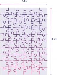 Az összeállított puzzle mérete kb. 23,5 × 33,5 cm