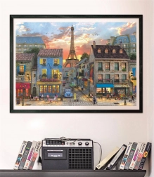 Romantikus utca Eiffel-toronnyal és esti hangulattal, amely kirakás után dekoratív képpé válik, keretezésre is alkalmas.