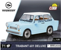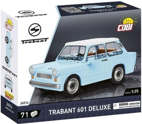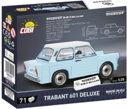Építsd meg az NDK kultikus járművét! Ez a COBI készlet hűen ábrázolja a TRABANT 601 Deluxe modellt 1:35 méretarányban, 71 minőségi elemből. Forgó kerekeket gumikkal, az eredetihez közeli új világoskék árnyalatot, valamint tartós, nem kopó nyomatokat matricák helyett kínál a hosszú távú megjelenésért még intenzív játék mellett is.