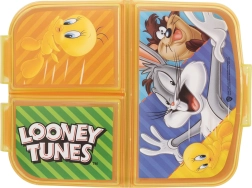 Stílusos LOONEY TUNES hősökkel díszített uzsonnás multibox, amely ötvözi a praktikus tagolást és a szórakoztató megjelenést. A három külön rekesz elkülönítve tartja az ételeket, frissen és átláthatóan – a szendvicstől a gyümölcsön át a kis falatokig. A tartós műanyagból készült, masszív szerkezet jól bírja a mindennapos használatot, az eséseket és az ütődéseket.