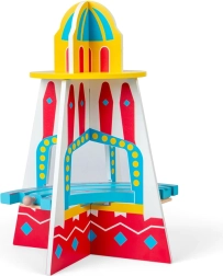 Ez a fa vasút a vidám vásár témájával mindent tartalmaz, ami szükséges, hogy elmerüljünk a szórakozás és öröm világában. A gyerekek vonatozhatnak a cirkuszi sátor körül, kacsavadászatra indulhatnak vagy vicces fotóhelyzetekkel készíthetnek képeket. A készlet tartalmaz: