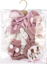 Adj új ruhatárat a babának az elegáns, 4 részes LLORENS szettel 42 cm-es babákhoz. A ruhácska gondosan varrt, a részletekre és a kényelemre összpontosítva, hogy öltöztetés és játék közben is kellemes legyen. A készlet ideális a fantázia és a szociális készségek fejlesztéséhez a gondoskodós szerepjáték során.