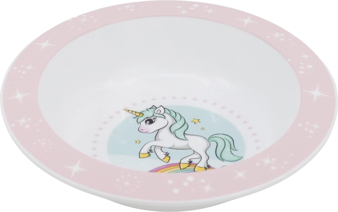 Aranyos gyerek tál egyszarvú mintával, amely vidámabbá teszi minden étkezést. Ergonomikus kialakítású a könnyű fogásért, BPA-mentes, és mikrohullámú sütőben használható.
