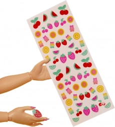 Belül több mint 15 meglepetés vár: sikkes outfit, cipők, ékszerek, babastand és körömszalon-kiegészítők – reszelő, 2 szett öntapadós és újra levehető műköröm, csillámok és 2 „lakk” üvegcse. Mindez játékos, gyümölcsös stílusban, amely ösztönzi a kreativitást és fejleszti a finommotorikát.
