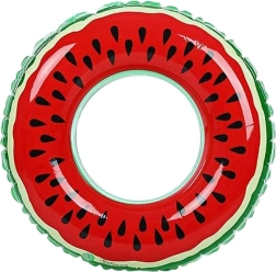 A felfújható úszógumi úgy néz ki, mint egy igazi dinnye, ami egyedi kiegészítővé teszi a vízi szórakozáshoz.