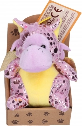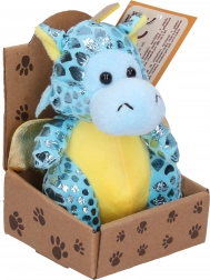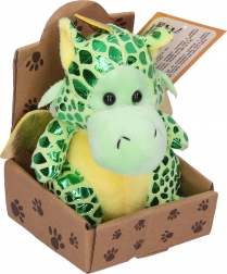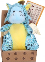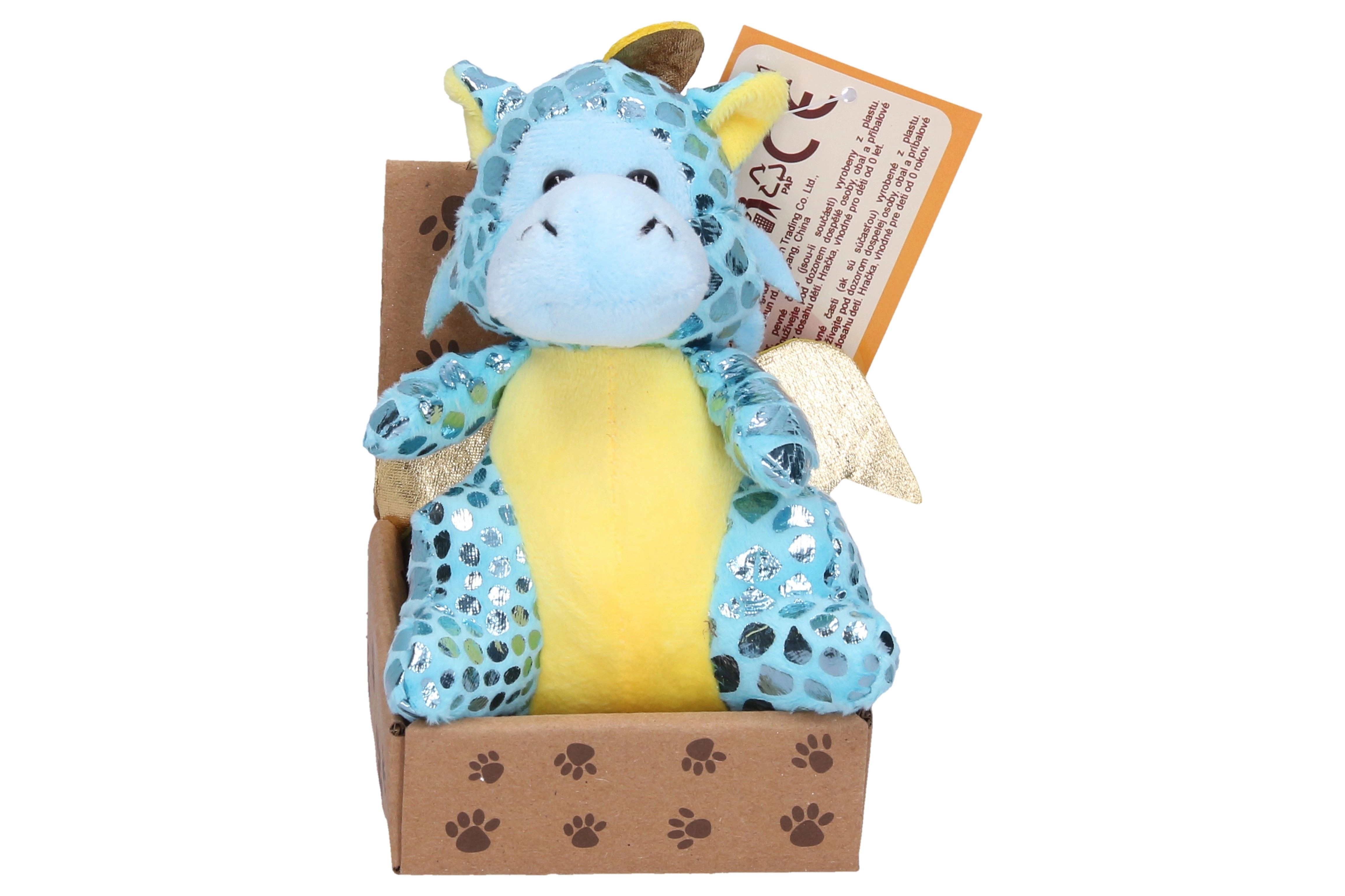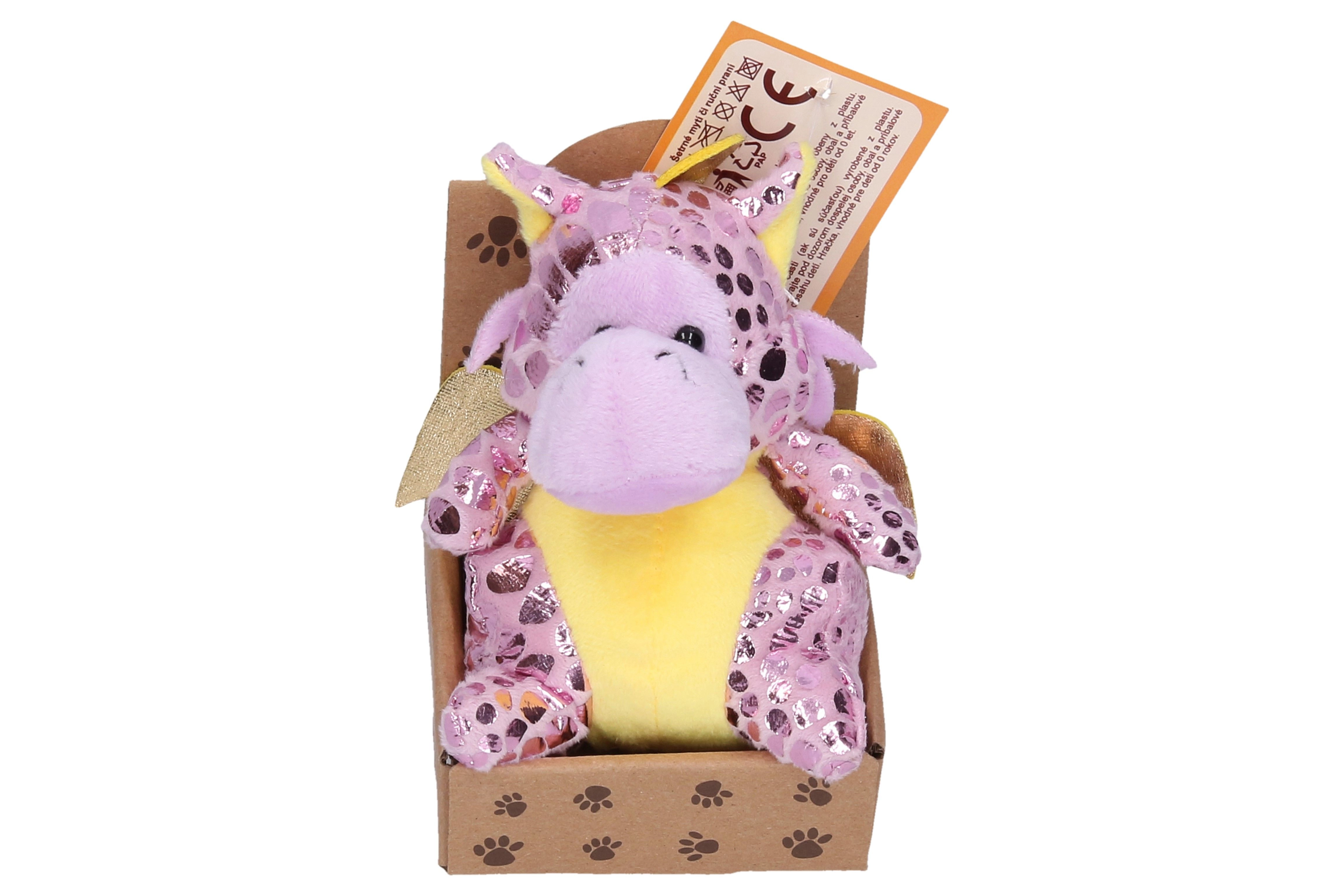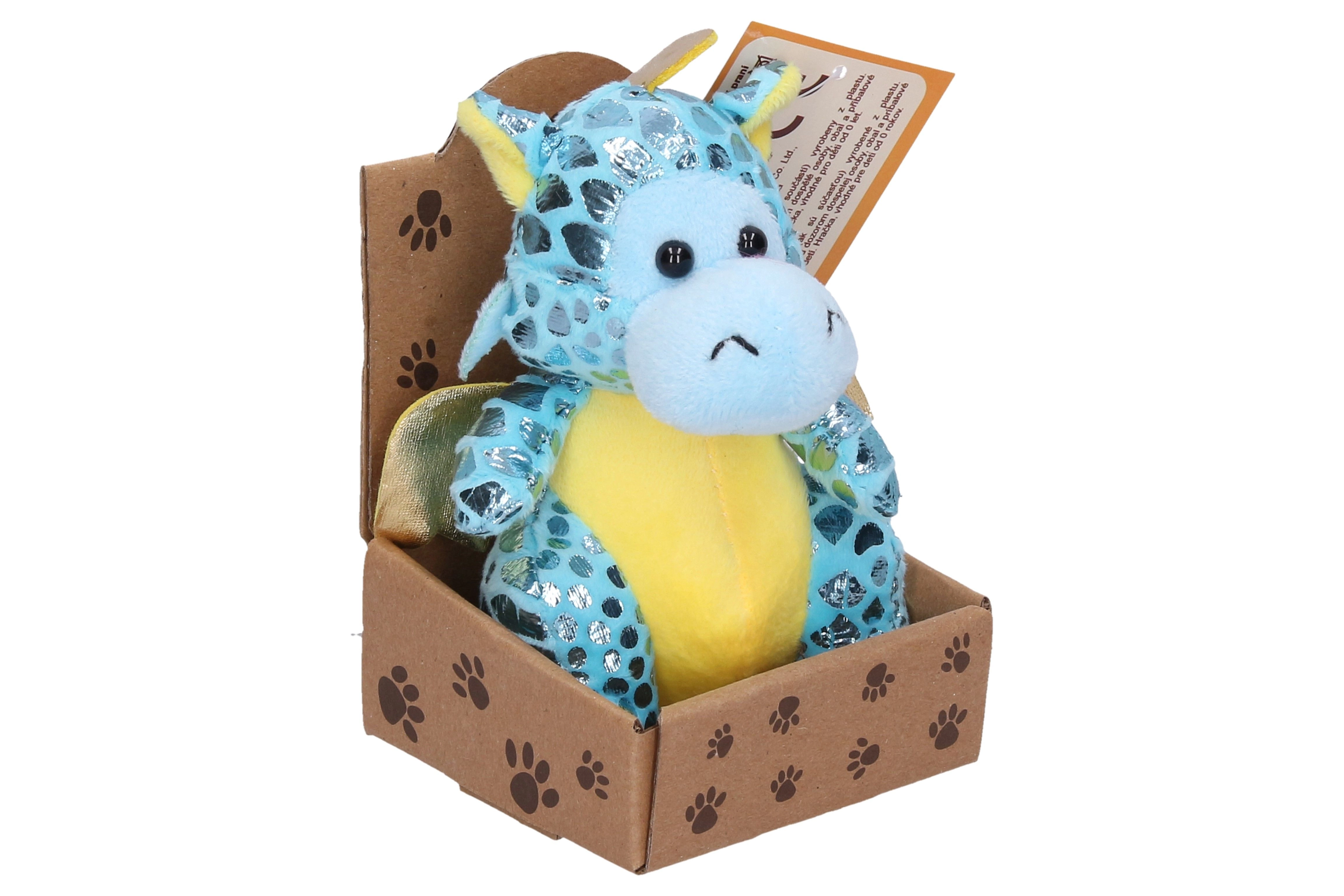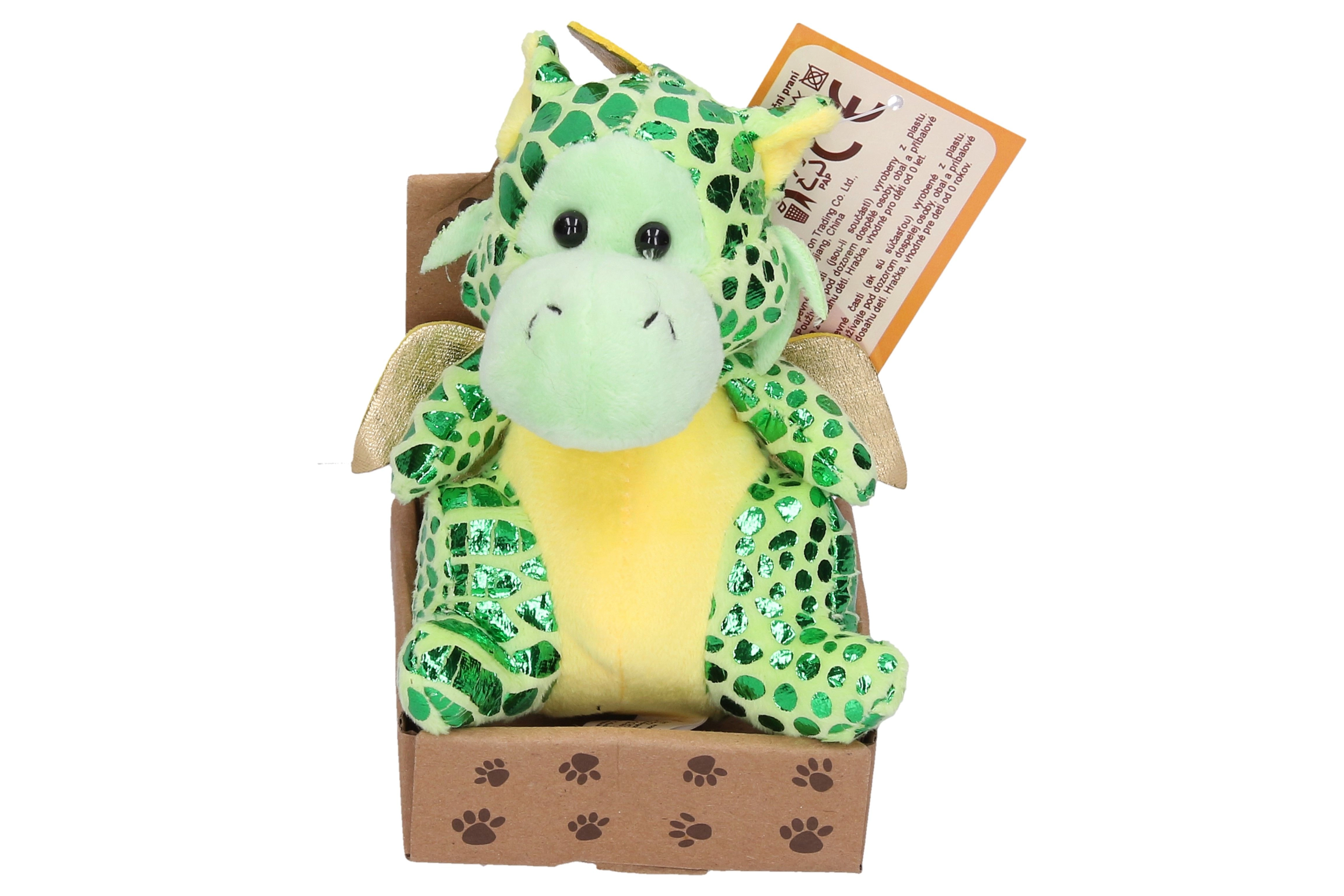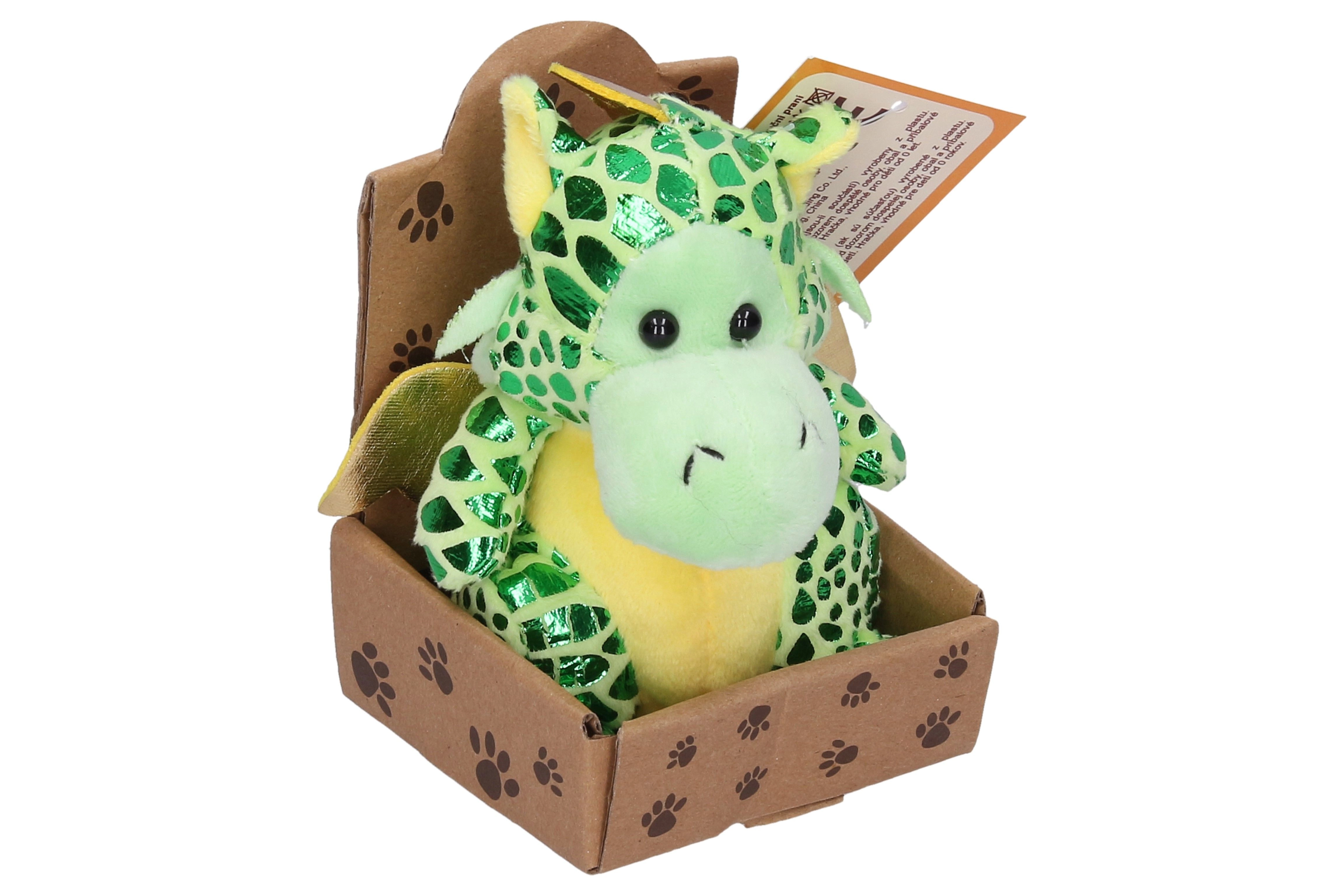 Ez a plüss sárkány csillogó kivitelével és kompakt, 13 cm-es méretével hoz örömöt, így könnyen elfér a hátizsákban vagy a polcon. A finom anyag kellemes tapintású és ölelgetésre hív, míg az élénk színek vonzó dísztárggyá és úti társá teszik.