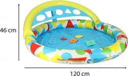 Könnyű és tartós PVC szerkezetének köszönhetően egyszerűen elhelyezhető a kertben, teraszon, erkélyen, vagy beltérben akár víz nélkül, száraz játéktérként is használható. A praktikus, 45 literes kapacitás sekély vízszintet tart fenn a szülők nyugalmáért és a gyerekek kényelméért.