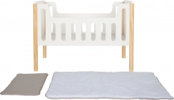 Ez a modern babakocsi a skandináv lineáris dizájnnal a babák vagy plüssállatok altatására kiválóan alkalmas. A kiváló minőségű kidolgozás lekerekített éleket és masszív fa elemeket tartalmaz a nagyobb tartósság és biztonság érdekében. A nagy takaróval kétoldalas ágynemű csomagolásának köszönhetően kényelmes alvást biztosít a nagyobb babák számára is. A felületek ergonomikusan kialakítottak a kényelmes játszási élmény érdekében.