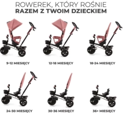 A gyermek tricikli AVEO úgy lett tervezve, hogy együtt nőjön a gyermekével. Már 9 hónapos kortól alkalmas, és 6 különböző konfigurációt kínál, amelyeket könnyen az Ön gyermekének képességeihez igazíthat. A triciklinek forgatható ülése, praktikus napellenzője, védőkorlátja és állítható pántjai vannak, ami biztosítja a biztonságot és kényelmet minden sétán. Az AVEO hosszú évekig hűséges társa lesz kirándulásokra.