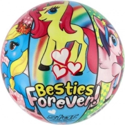 A labda színes póni képekkel van díszítve, amely vonzza a figyelmet és örömöt hoz minden játék során.