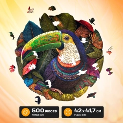 Ez a dizájnos fa kirakó színes tukán motívummal órákig tartó szórakozást és gyönyörű lakásdekorációt kínál. Az 500 egyedi elem mindegyike pontosan van kivágva 5 mm vastag, FSC tanúsítvánnyal rendelkező fából, így kényelmesen rakható és stabilan tartja a formáját. A modern UV nyomtatásnak köszönhetően a színek és részletek élettel teliek, a kész kép pedig remekül díszíti a falat.