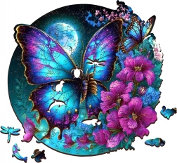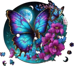 Ez az egyedülálló fa puzzle a dizájn és a minőség harmóniáját hozza el: 5 mm vastag, tanúsított fa lemez, precíz lézervágás és UV digitális nyomtatás a ragyogó színekért. A virágokkal díszített, kör alakú pillangó kép a puzzle-rajongók és a lakberendezés szerelmesei számára is örömet okoz.