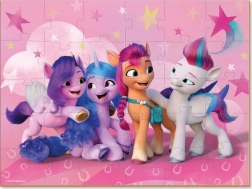 Bájos gyerek puzzle MY LITTLE PONY motívummal, amely örömet szerez a mesék kis rajongóinak. 30 darabbal és a kirakás után kb. 27 × 20 cm mérettel ideális az első kirakásokhoz, a finommotorika fejlesztéséhez és a türelem gyakorlásához.