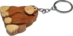 Fedezze fel a természetes szépséget a fa majom formájú kulcstartóval, amely akár öt féle fából kézzel készült: sárga kenyérfa, világosbarna tamarind, sötétbarna kasszia, rózsaszín aniba és fehér gmelina arborea. Kézzel festve, csak a fa természetes színe jelenik meg, amely nem festett.