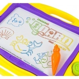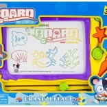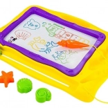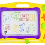 A mágneses tábla remek választás papír nélküli, maszatolásmentes rajzoláshoz. A kijelző alatt fémreszelék található, amely mágneses stylus érintésére képekké rendeződik. Törléshez elég enyhén elcsúsztatni az alsó törlőcsúszkát, és a felület máris készen áll az új alkotásra.