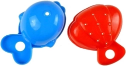 A készlet tartalmaz továbbá hal- és kagylóformákat, amelyeket a gyerekek használhatnak homokkal és vízzel való játék során.