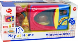 Gyermek mikrohullámú sütőnk kiváló választás a kis szakácsok számára, akik szeretnek megtanulni a konyhai eszközökről. Ez a színes mikrohullámú sütő valósághű gombokkal és tartozékokkal rendelkezik, amely támogatja a fantáziadús játékot. Gyermeke a hal, csirke és pizza motívumú gombok segítségével választhat melegítési időt, és a START gombra kattintva elindíthatja a programot. Az OPEN/STOP gomb megállítja a melegítést és kinyitja az ajtót.