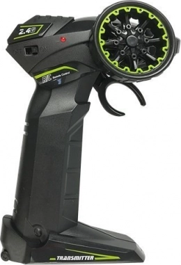 A modern 2,4 GHz-es adó zavarásmentes vezetést és több autóval egyidejű versenyzést tesz lehetővé 30–50 méteres hatótávon.