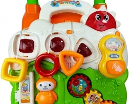 A Do–Szó hangokra hangolt billentyűk, a fogaskerekek, a kis ajtó és a kedves motívumok fejlesztik az érzékelést és a finom motorikát. A panel önállóan is használható.