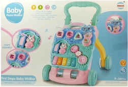 Támogassa gyermeke első önálló lépéseit biztonságos és játékos módon. A színes tolóka masszív fogantyúval, stabil talppal és szilikonpántos kerekekkel rendelkezik az egyenletesebb, kontrolláltabb haladásért. Az interaktív panel 5 billentyűs zongorával, fogaskerekekkel, nyitható ajtóval és egy aranyos nyuszival fejleszti a látást, hallást és a finom motorikát.