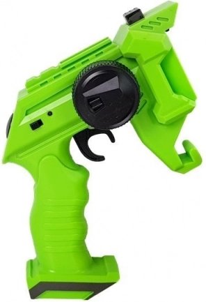 Szórakoztató 2 az 1-ben játék, amely egy pillanat alatt átváltozik a zöld pisztolyból verseny RC autóvá. A 2,4 GHz-es vezérlés biztosítja a sima előre/hátra haladást és a kanyarodást, emellett erős habkorong-lövéssel is rendelkezik. A csomagban 600 mAh Li–ion akkumulátor és USB töltő található – csak töltsd fel, és kezdődhet a játék.
