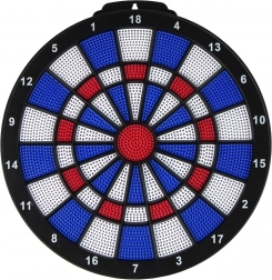 Fekete, kék, piros és fehér körminták számokkal kiegészítve a szórakoztató játék érdekében.