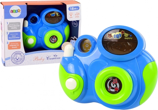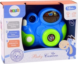 Ez a szórakoztató és biztonságos gyermek fényképezőgép segít a legkisebbeknek felfedezni a világot a felnőttek utánzásával. A gombok megnyomására 3 dallam szólal meg, színes fények villannak, és élethű „kattanás” hang hallható. A forgatható objektív ráadásul forgatás közben kellemesen csörög, ami felkelti a kíváncsiságot és fejleszti a finommotorikát.