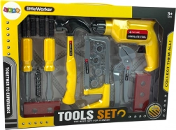 A készlet része egy szimulált fúró, kalapács, fűrész és fogó – mindez olyan kivitelben, amely a valódi szerszámokat idézi, és ösztönzi a felnőttek utánzását.