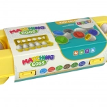 A szett 12 darab tojást tartalmaz műanyag, zárható dobozban – könnyű tárolás és hordozás. A tartós, éles szélektől mentes kivitel ideális a kis gyerekkézhez, és hosszú órákon át tartó felfedezést, játékos tanulást biztosít.