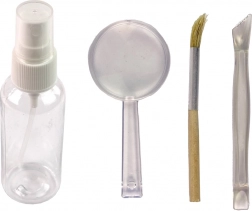 Tartalmaz vizes palackot, preciziós ecsetet, nagyítót és ásó eszközt a részletes kutatáshoz.
