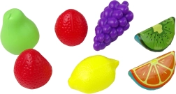 A készlet változatos műanyag gyümölcsöket tartalmaz, többek között körtét, epreket, szőlőt, citromot, egy szelet kivit és narancsot. A valósághű megjelenésű gyümölcsök kiválóan alkalmasak a különböző fajták megismerésére.