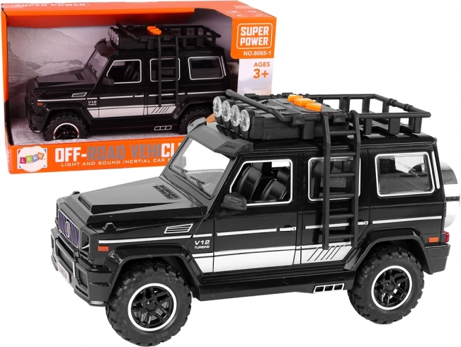 Fedezze fel a határtalan szórakozást a kis kalandoroknak készült fekete terepjáróval. A súrlódásos meghajtásnak, a fényhatásoknak és a hangoknak köszönhetően élethű játékélményt nyújt, míg a gumibroncsok kiváló tapadást biztosítanak különféle felületeken. A nyitható ajtók, a vezérlőgombok és a tartós műanyagból készült minőségi kivitel hosszú órákon át tartó örömet ígér.