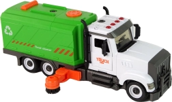 Ez a részletgazdag, zöld-fehér seprőautó realisztikus utcatisztító játékélményt nyújt. Nyitható első és hátsó ajtók, nagy, stabil kerekek és narancssárga oldalkefék teszik hitelessé a játékot. A frikciós hajtásnak köszönhetően elég meghúzni és elengedni – magától elindul.