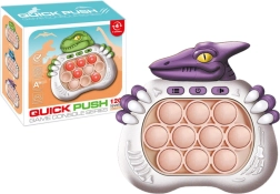 A Dino Pop It játék egy lenyűgöző, elemekkel működő konzol, amely fény- és hangjeleket használ, hogy felkeltse és leköti a gyerekek figyelmét. Az élénk színű dínó motívummal rendelkező játék serkenti a gyerekek memóriáját és segít a koncentráció javításában.