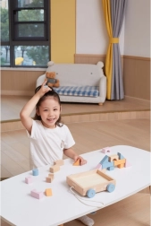 A VIGA PolarB fa húzós kocsi 20 pasztell színű kockával van felszerelve, amelyek különböző formák és minták révén lehetővé teszik a fantáziadús építést. A kocsi úgy van tervezve, hogy a gyerekek könnyen fejlesszék motoros készségeiket és kreativitásukat. Játék közben a gyerekek megtanulják koordinálni mozgásaikat és koncentrálni a feladatokra.