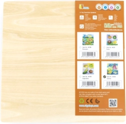- A készlet tartalmaz egy táblát és 4 puzzle-t: Igazítsd az egyes darabokat a táblán található formákhoz.