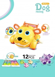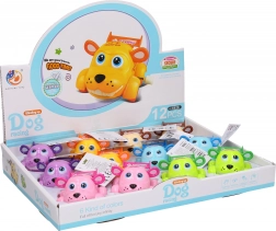 Aranyos felhúzható kutya műanyagból, 8 cm-es méretben, ideális játék kisgyermekeknek. Egyszerűen húzza fel, és nézze meg, ahogy mozog.