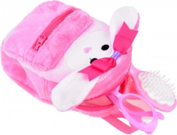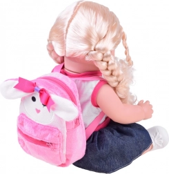 A felszerelés része a stílusos rózsaszín szemüveg és a puha, nyuszifüles plüss hátizsák, amelybe a kis „szülők” apróságokat tehetnek. A mozgatható végtagok természetes testtartást biztosítanak játék közben – akár sétára indulnak, könyvet olvasnak, vagy mesét néznek.