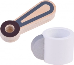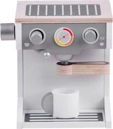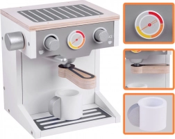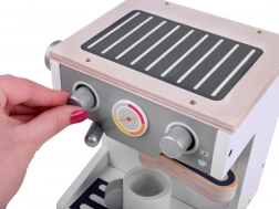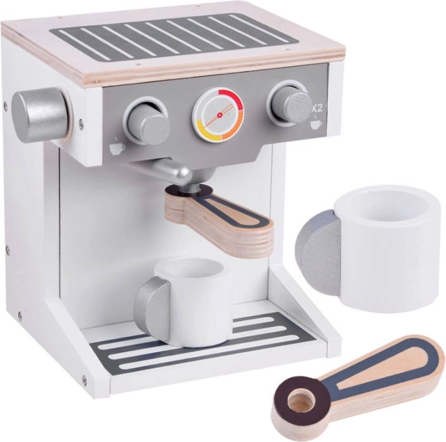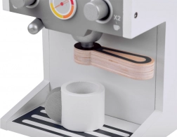 A csomag tartalma: fából készült kávéfőző, csésze, portafilter és állítható kar, amelyek valósághű kávékészítési élményt nyújtanak. Ideális a gyerekek finommotorikus képességeinek és kreatív gondolkodásának fejlesztésére, akik különféle szerepjáték-jeleneteket hozhatnak létre a konyhában.