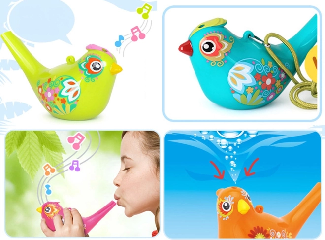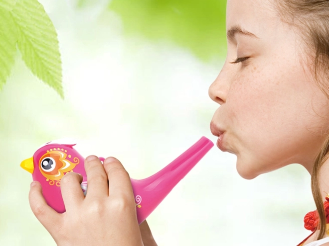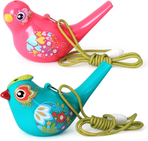Ez a vízsíp madárka formában könnyű, tartós és ideális gyerekeknek. Víz nélkül tiszta, világos hangot ad; kevés vízzel megtöltve a madárka dallamosan csiripel. A hangerőt és a hangmagasságot könnyen befolyásolhatja a víz mennyiségével és a fújás erejével.