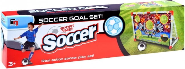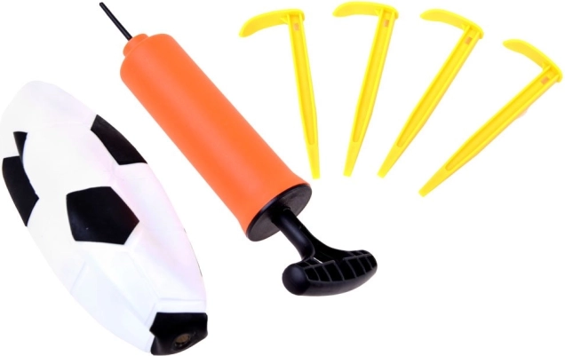 A csomag tartalma: kapu hálóval, labda, pumpa és 4 leszúró cövek – minden, amire a gyerekeknek az azonnali játékhoz szükségük van.