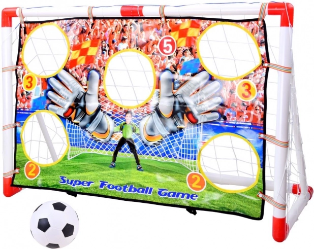Ez a gyerek focikapu célzóponyvával remek eszköz a szórakoztató edzésekhez és az első focilépésekhez. A könnyű műanyag szerkezetnek köszönhetően egyszerűen szállítható és gyorsan összeszerelhető, míg a számozott nyílásokkal ellátott, színes ponyva motivál a lövések pontosságának és technikájának gyakorlására.