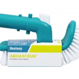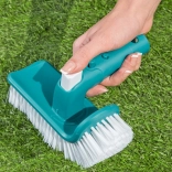 Tartsa medencéjét kristálytisztán a Bestway AquaScrub kefével, melynek 180°-ban forgatható fejrésze van. Az ergonomikus kialakítás és az ívelt fej megkönnyíti a falak, az aljzat és a sarkok tisztítását, miközben az erős sörték hatékonyan eltávolítják az algát és lerakódásokat. A Ø 30 mm-es teleszkópos rudakkal való kompatibilitás kényelmes elérést biztosít a távolabbi részekhez is.