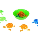 A színes műanyag békákat könnyedén ujjbeggyel lehet kilőni, egyenesen a tálkába. Ideális gyors versenyekhez és ügyességfejlesztő gyakorláshoz.