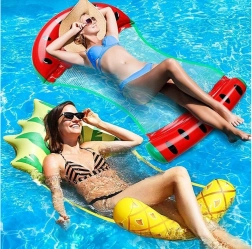 A „pineapple” típusú felfújható függőágy játékos dizájnt és okos felépítést kínál: két oldalsó levegőhenger a stabilitásért, köztük pedig erős nejlon háló, amelyen kényelmesen elnyúlhatsz. Részben a vízben maradsz, így napozás közben is természetesen hűsölsz.
