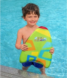 A 42x32x35 cm-es deszka ergonomikus formájú. Tartós habból készült, kiváló felhajtóerővel. Szövetborítással van ellátva, színes grafikával, amely kényelmes fogást biztosít és megakadályozza a kicsúszást a kezekből. 3-6 éves gyerekeknek alkalmas. < /span>