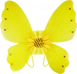 A ragyogó sárga napraforgó jelmez első pillantásra magára vonja a figyelmet – a csillogó részletek, a finom kövecskék és a szárnyak közepén lévő virág varázslatos megjelenést adnak. A habos szoknya alul arany flitterekkel szegélyezett, így minden mozdulatnál szépen csillog.